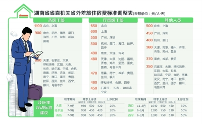 湖南日报1月3日讯(记者 柳德新 通讯员 罗云峰)省财政厅决定,从2016年1月1日起调整省直机关差旅住宿费标准。