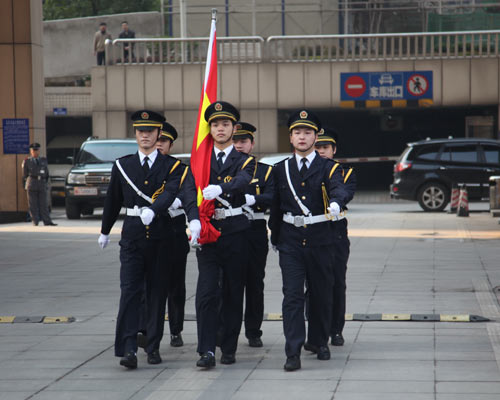 雄赳赳气昂昂的护旗队进场