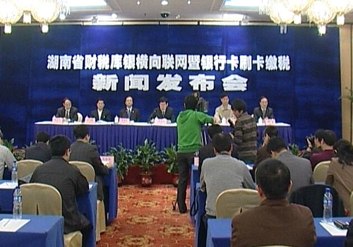 今天上午,湖南省召开了财税库银横向联网暨银行卡刷卡缴税新闻发布会,银行卡刷卡缴税将在全省范围内大力推广。湖南省政府副省长韩永文,中国人民银行副行长苏宁,省长助理、财政厅厅长李友志,湖南省国税局局长程安亭,湖南省地税局局长吕兴胜,中国人民银行长沙中心支行行长周晓强出席会议,湖南省政府新闻办主任孔和平主持发布会。