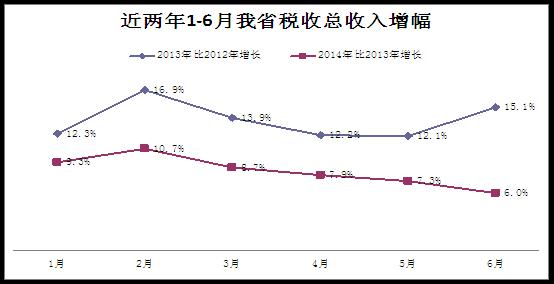一、2014年1-6月我省税收收入增长总体情况