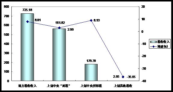 上半年,全省完成税收收入1469.05亿元,同比增长6.0%,增幅比去年同期回落9.06个百分点。税收收入占公共财政收入的比重为76.13%,较去年同期回落0.34个百分点,收入质量有所下降。分级次看,地方税收收入725.18亿元,增长8.01%。其中,省级税收收入145.70亿元,增长3.92%;市县级税收收入579.48亿元,增长9.08%;上划中央“两税”收入561.82亿元,增长2.99%;上划中央所得税179.39亿元,增长8.93%;上划中央其他税收2.66亿元,同比减少36.65%。分部门看,国税收入820.12亿元,增长4.71%;地税收入648.76亿元,增长6.81%。