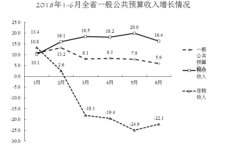 收入方面:全省一般公共预算收入完成2594.2亿元,增长5.9%,完成年初预算的53.3%,超过序时进度,实现“双过半”。省级一般公共预算收入完成591.3亿元,增长12.2%。分月来看,税收收入增长较快,增幅维持在16%以上,非税收入逐步做实,降幅达18%以上。总体上看,1-6月全省一般公共预算收入增幅基本符合预期。分结构来看,一般公共预算收入中税收完成2076.3亿元,增长16.4%,非税完成517.9亿元,下降22.1%,地方收入中非税占比33.9%,比上年同期下降9.7个百分点,主要是各地按照高质量发展要求,下大力气规范财政管理,狠抓收入质量改善,成效明显。分税种来看,受经济回暖影响,主体税种增长较快,增值税791.5亿元,增长17.4%,企业所得税353.9亿元,增长21.5%,个人所得税158.3亿元,增长26.2%,消费税364.4亿元,增长8.2%,受土地挂牌成交减少等因素影响,耕地占用税、城镇土地使用税等小税种增长相对较慢。
